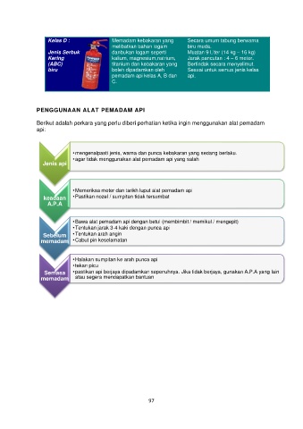 Kelas D : Memadam kebakaran yang Secara umum tabung berwarna