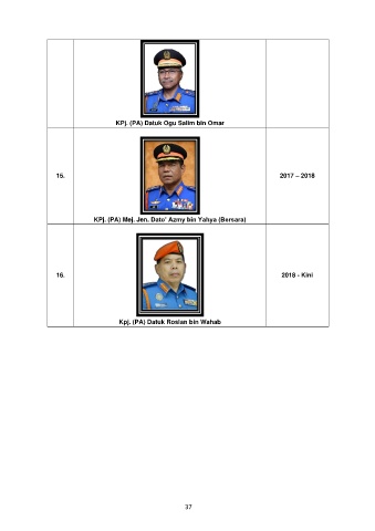 KPj. (PA) Datuk Ogu Salim bin Omar 15. 2017 – 2018 KPj. (PA) Mej. Jen. Dato’ Azmy bin Yahya (Bersara) 16. 2018 - Kini Kpj. (PA) Datuk Roslan bin Wahab 37