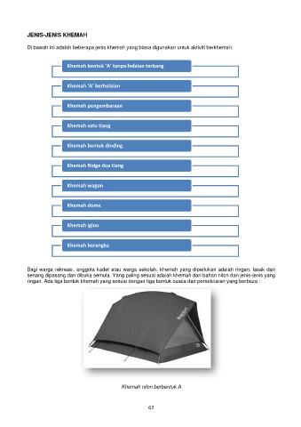 ringan. Ada tiga bentuk khemah yang sesuai dengan tiga bentuk cuaca dan persekitaran yang berbeza :