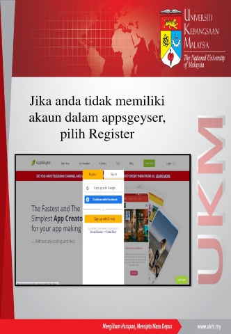 Jika anda tidak memiliki akaun dalam appsgeyser, pilih Register