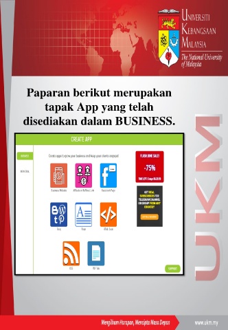Paparan berikut merupakan tapak App yang telah disediakan dalam BUSINESS.