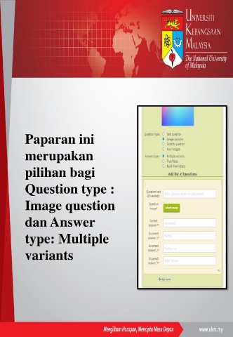 Paparan ini merupakan pilihan bagi Question type : Image question dan Answer type: Multiple variants