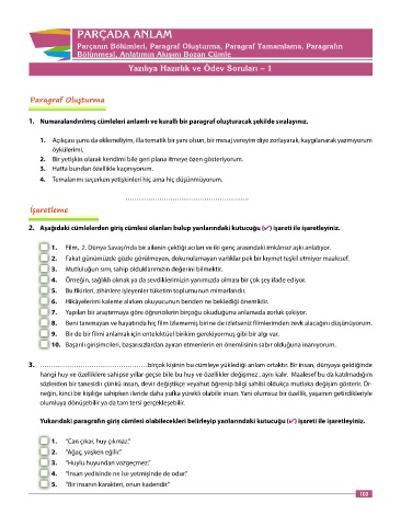 1. Numaralandırılmış cümleleri anlamlı ve kurallı bir paragraf oluşturacak şekilde sıralayınız.