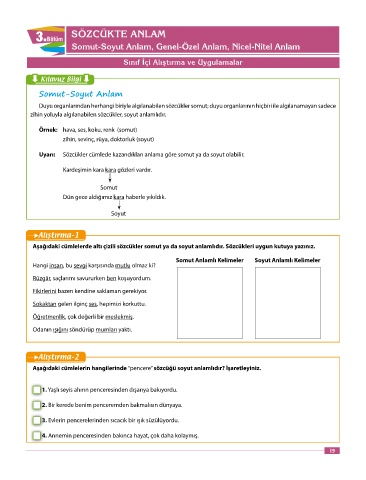 Uyarı: Sözcükler cümlede kazandıkları anlama göre somut ya da soyut olabilir.
