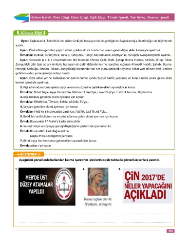 Aşağıdaki görsellerde kullanılan kesme işaretinin işlevlerini sıralı nokta ile gösterilen yerlere yazınız.