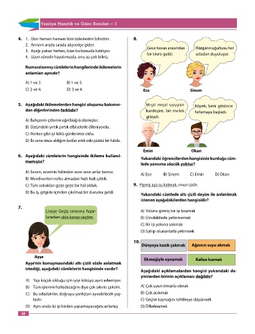 4. 1. Dün hemen hemen tüm ödevlerimi bitirdim. 8.