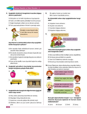 4. Aşağıdaki cümlelerin hangisinde insandan doğaya 8. Bir yağmur başlar ya inceden ince
