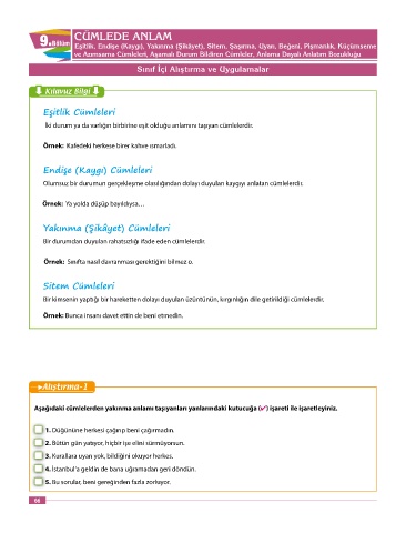 9.Bölüm Eşitlik, Endişe (Kaygı), Yakınma (Şikâyet), Sitem, Şaşırma, Uyarı, Beğeni, Pişmanlık, Küçümseme