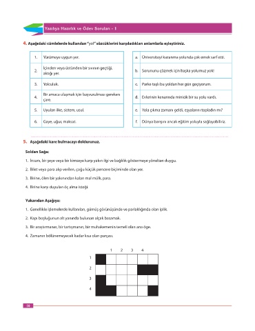 4. Aşağıdaki cümlelerde kullanılan “yol” sözcüklerini karşıladıkları anlamlarla eşleştiriniz.