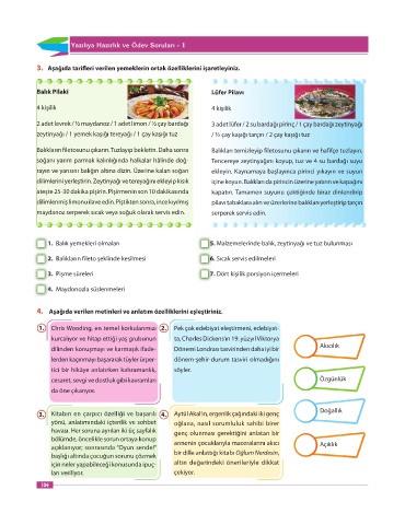 3. Aşağıda tarifleri verilen yemeklerin ortak özelliklerini işaretleyiniz.