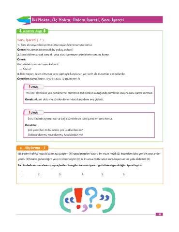 1. Soru eki veya sözü içeren cümle veya sözlerin sonuna konur.