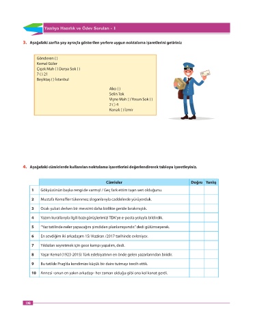 3. Aşağıdaki zarfta yay ayraçla gösterilen yerlere uygun noktalama işaretlerini getiriniz