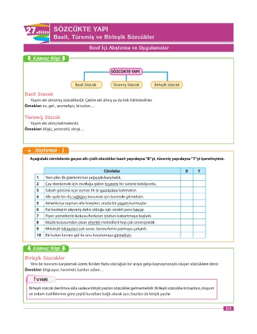 Aşağıdaki cümlelerde geçen altı çizili sözcükler basit yapıdaysa “B”yi, türemiş yapıdaysa “T”yi işaretleyiniz.