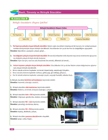 ses değişimi yoluyla birleşik sözcük oluşturur.
