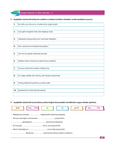 4. Aşağıdaki cümlelerde boş bırakılan yerlere bağlaç kutusundaki sözcüklerden uygun olanları getiriniz.
