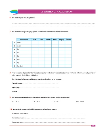 Page 261 - 6.Sınıf Dorya Türkçe Sınıf İçi Uygulama Klavuzu_edited_edited