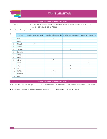 1. 1. h 2. a 3. d 4. e 5. f 6. c 7. g 8. b 2. 1. İsim Gövdesi 2. İsim Gövdesi 3. Fiil Gövdesi 4. Fiil Gövdesi 5. Fiil Gövdesi