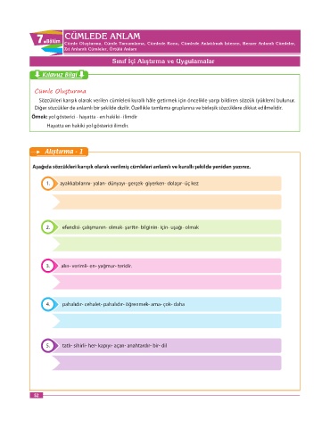 7.Bölüm Cümle Oluşturma, Cümle Tamamlama, Cümlede Konu, Cümlede Anlatılmak İstenen, Benzer Anlamlı Cümleler,