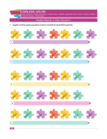 1. Aşağıda verilmiş yapboz parçalarını anlamlı ve kurallı bir cümle hâline getiriniz.