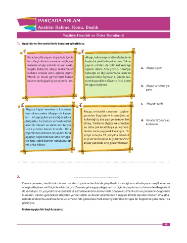 1. Aşağıda verilen metinlerle konuları eşleştiriniz.
