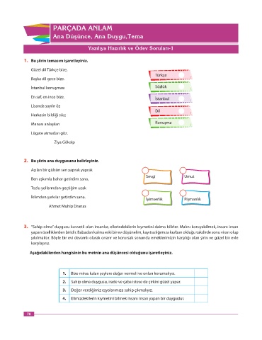 1. Bu şiirin temasını işaretleyiniz.