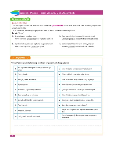 “Almak” sözcüğünün kullanıldığı cümleleri uygun anlamlarla eşleştiriniz.