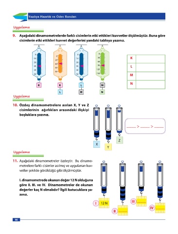 10. Özdeş dinamometrelere asılan X, Y ve Z
