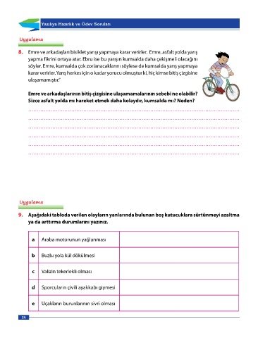 8. Emre ve arkadaşları bisiklet yarışı yapmaya karar verirler. Emre, asfalt yolda yarış
