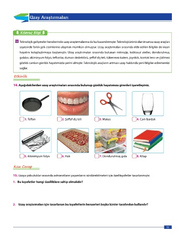 14. Aşağıdakilerden uzay araştırmaları sırasında bulunup günlük hayatımıza girenleri işaretleyiniz.