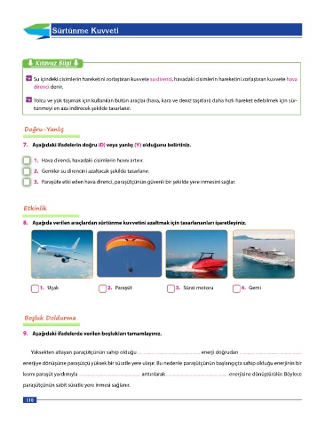 Page 110 - 7 sınıf Dorya Fen Bilimleri Sınıf İçi Uygulama Klavuzu_edited