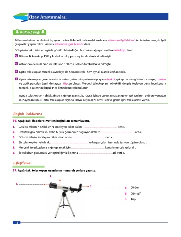 17. Aşağıdaki teleskopun kısımlarını numaralı yerlere yazınız.