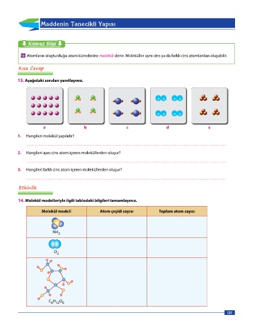 14. Molekül modelleriyle ilgili tablodaki bilgileri tamamlayınız.
