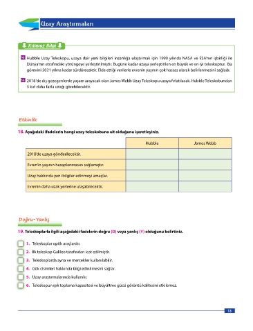 18. Aşağıdaki ifadelerin hangi uzay teleskobuna ait olduğunu işaretleyiniz.
