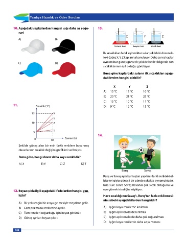 10. Aşağıdaki şapkalardan hangisi ışığı daha az soğu- 13.