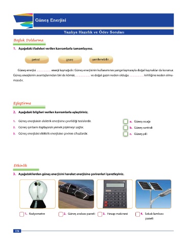 Page 174 - 7 sınıf Dorya Fen Bilimleri Sınıf İçi Uygulama Klavuzu_edited