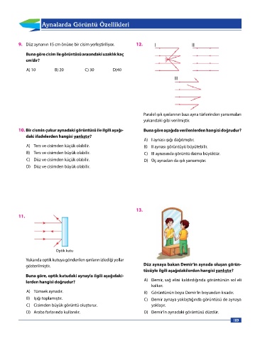 9. Düz aynanın 15 cm önüne bir cisim yerleştiriliyor. 12. I II