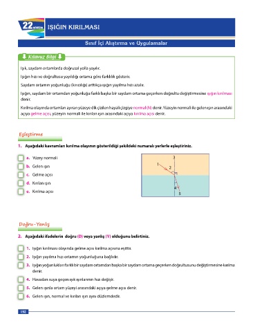 1. Işığın kırılması olayında gelme açısı kırılma açısına eşittir.