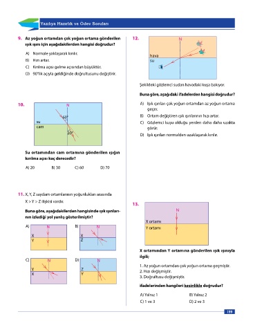 9. Az yoğun ortamdan çok yoğun ortama gönderilen 12. N