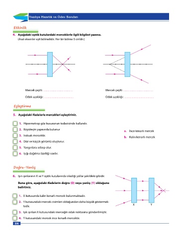 4. Aşağıdaki optik kutulardaki merceklerle ilgili bilgileri yazınız.
