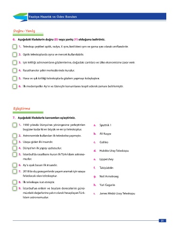 Page 21 - 7 sınıf Dorya Fen Bilimleri Sınıf İçi Uygulama Klavuzu_edited