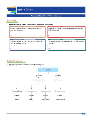 1. Aşağıda tanımları verilen eşeysiz üreme çeşitlerinin adını yazınız.