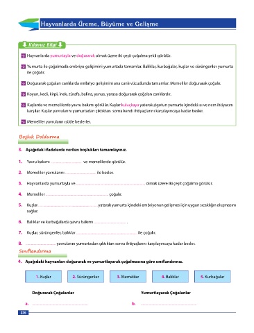 3. Hayvanlarda yumurtayla ve .............................................................................. olmak üzere iki çeşit çoğalma görülür.