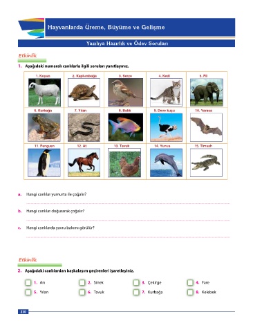 2. Aşağıdaki canlılardan başkalaşım geçirenleri işaretleyiniz.