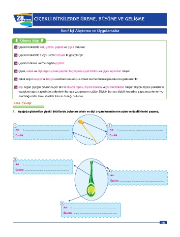 1. Aşağıda gösterilen çiçekli bitkilerde bulunan erkek ve dişi organ kısımlarının adını ve özelliklerini yazınız.