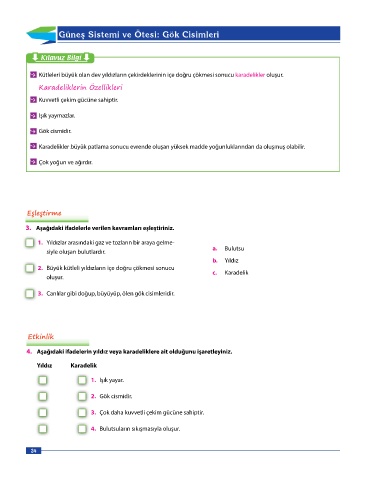 4. Aşağıdaki ifadelerin yıldız veya karadeliklere ait olduğunu işaretleyiniz.