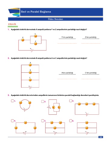 1. Aşağıdaki elektrik devresinde X ampulü patlarsa Y ve Z ampullerinin parlaklığı nasıl değişir?