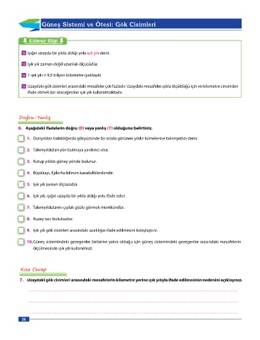 7. Uzaydaki gök cisimleri arasındaki mesafelerin kilometre yerine ışık yılıyla ifade edilmesinin nedenini açıklayınız.