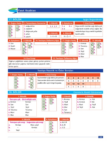 D 1. Y 5. 1. soğurulma 1. X 2. Y 1. a 2. c Koyu renkli cisimler ışığı daha çok