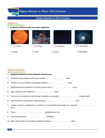 10. Bütün gök cisimleri ve arasındaki boşlukların tamamına ..................................................... denir.
