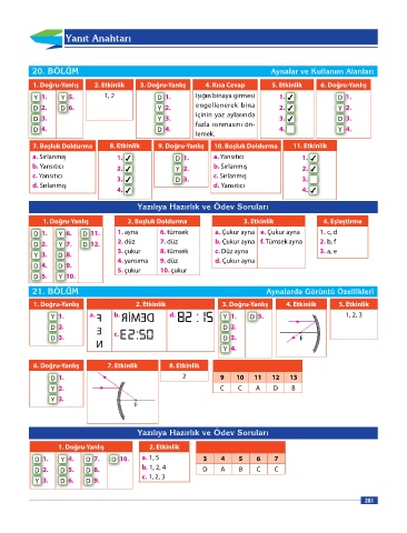 Y 3. D 8. 3. çukur 8. tümsek c. Düz ayna 3. a, e